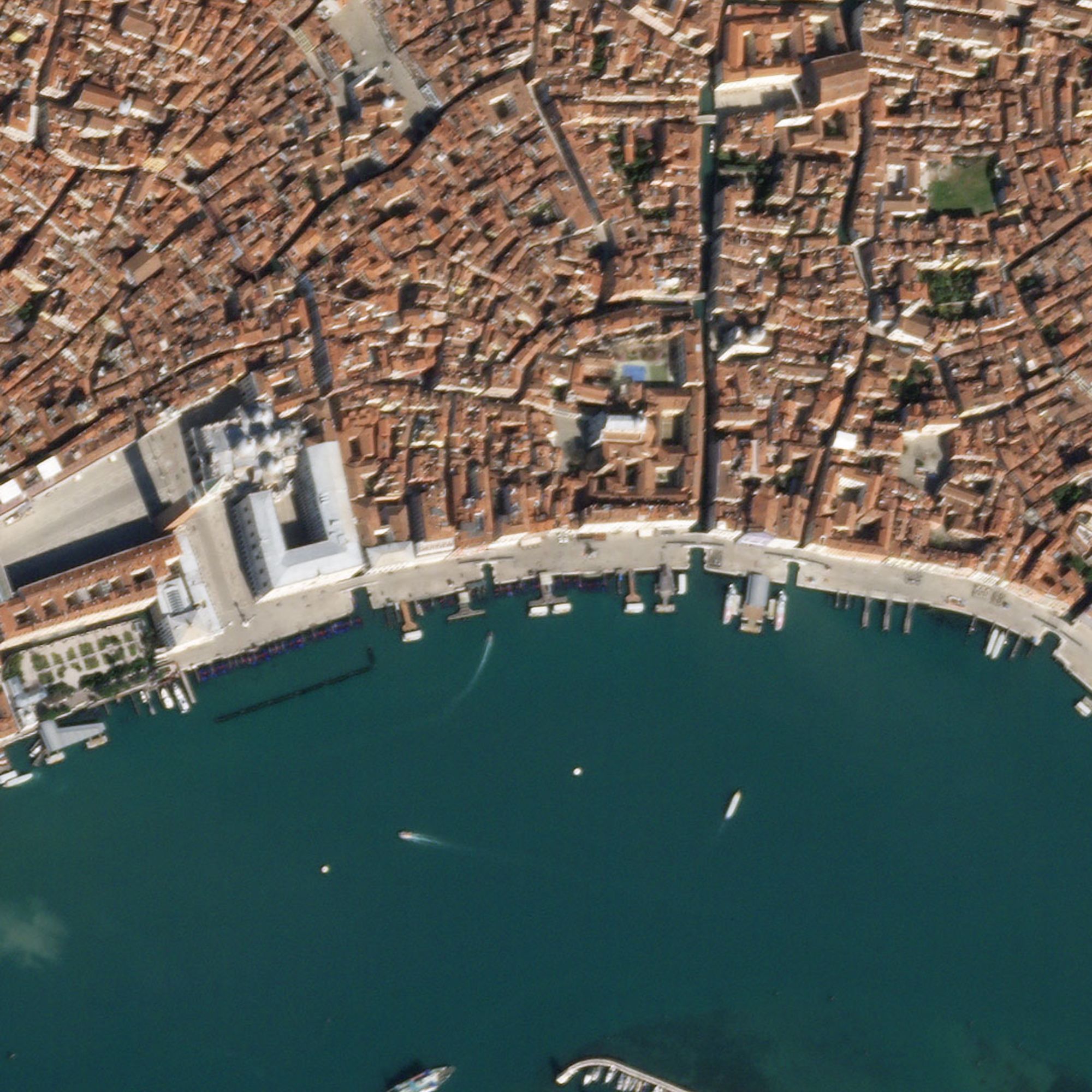 Trong bức không ảnh chụp vào ngày 20/10/2019 – thời điểm dịch COVID-19 còn chưa xuất hiện, sự nhộn nhịp ở thành phố Venice là điều có thể nhận thấy khi lượng lớn tàu thuyền liên tục di chuyển trên biển. Là một trong những trung tâm du lịch của miền Bắc Italy, thành phố hàng năm đón một lượng lớn khách du lịch quốc tế tới tham quan và nghỉ dưỡng.